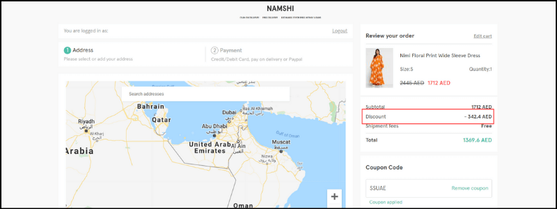 Namshi discount code up to 60% | April 2022 Namshi accepts credit cards, PayPal, Apple Pay, cash on delivery, and Pay by Tamara - buy now, pay 30 days later. Namshi offers free delivery on orders over AED100. If your order is under AED100, you will have to pay AED 15 for the delivery.